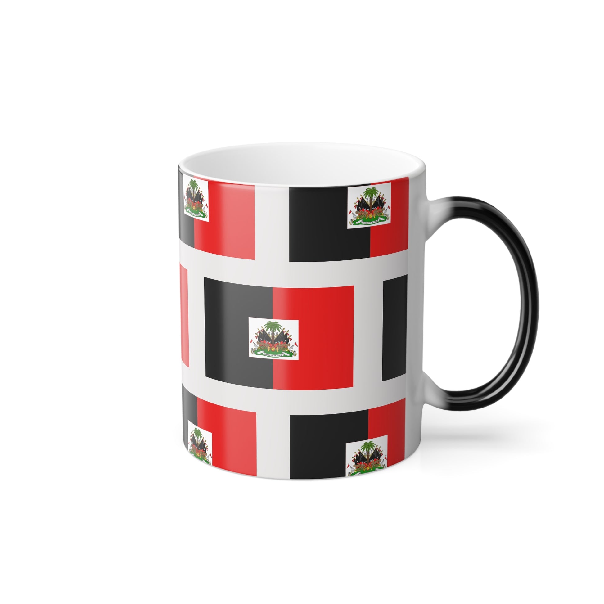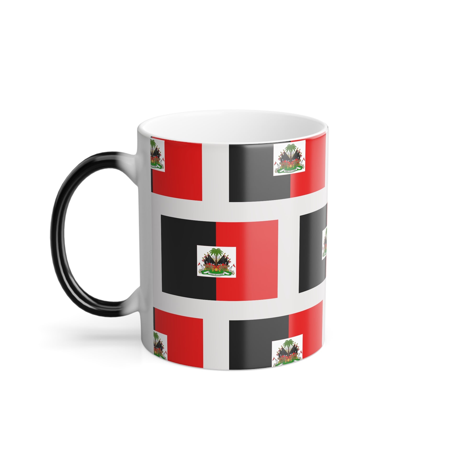 Color-Changing 11oz Mug — Red & Black Flag Pattern with Floral Crest